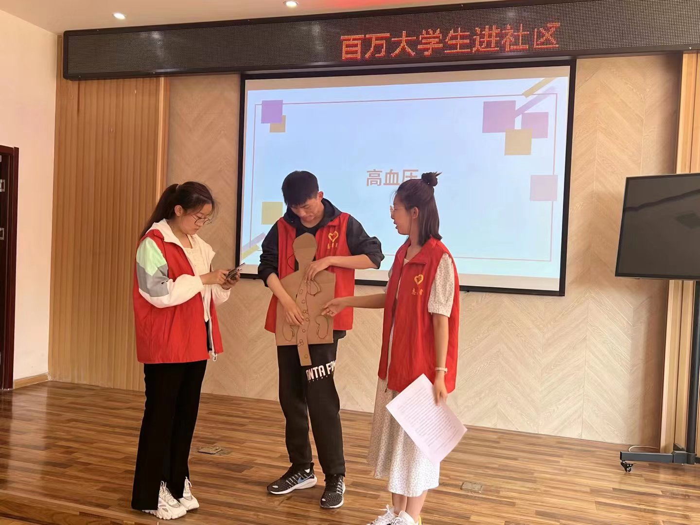 同学们走进社区,针对高血压和肺癌两种常见疾病展开健康宣讲。通过人体简易模型和PPT讲解相结合的方式,清晰明了的向大家展示了高血压及肺癌的形成方式。随后,就两种疾病的防治展开了详细介绍,播放宣传视频,号召大家合理膳食,定期锻炼身体,保持良好作息,才能拥有健康体魄。