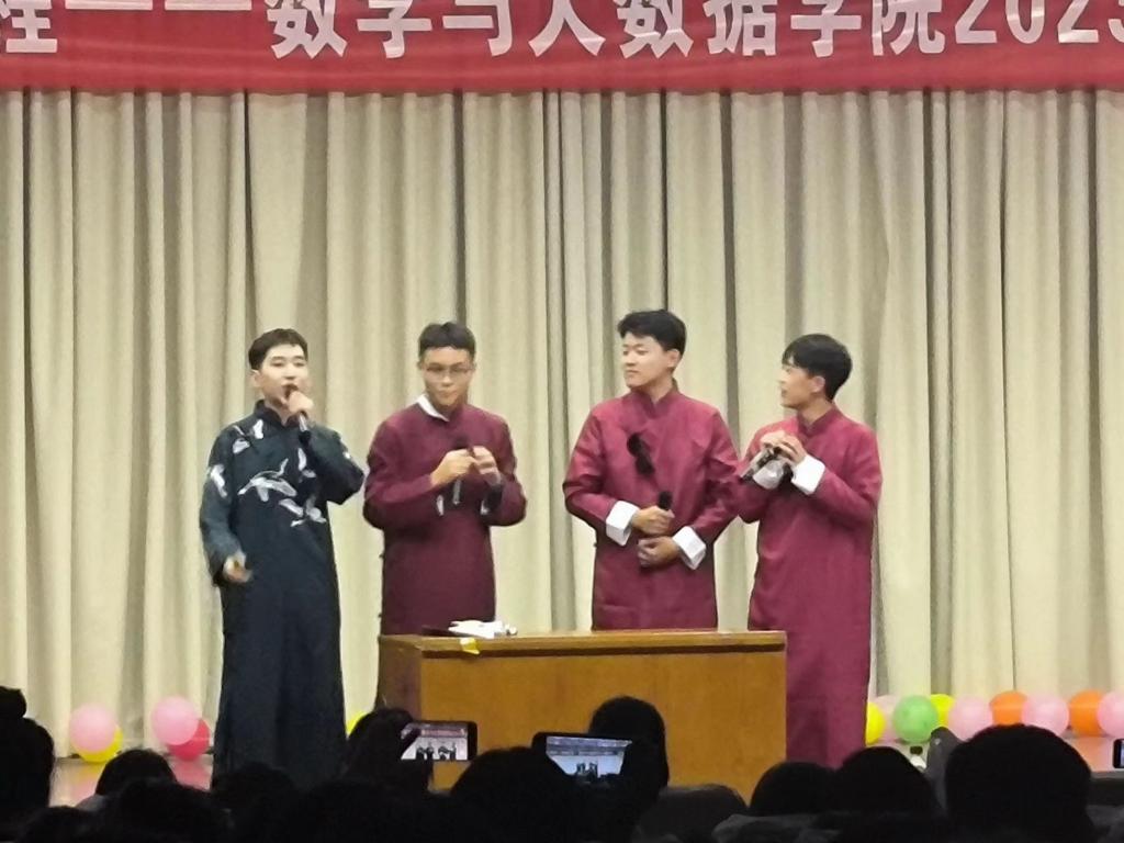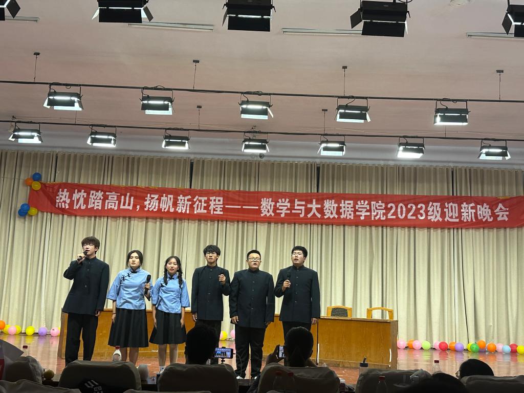 本次迎新晚会经过精心策划与筹备,同学们以饱满的姿态,热情洋溢的精神面貌,出色的完成了节目。节目形式多样,精彩纷呈,场下掌声欢笑不断。以“热忱踏高山,扬帆新征程”为主题,围绕反诈等社会热点话题,演出风采、舞出活力、讲出时代精神,唱出时代强音!演出中途插播游戏环节,增强互动性与趣味性,发放福利,同学们认真观看节目,现场气氛高涨。