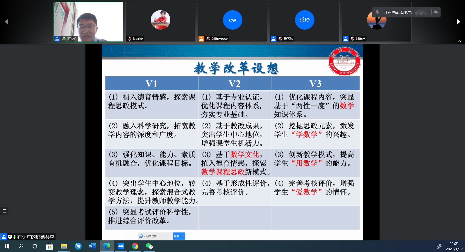 2021年1月17日上午由英国上市公司365主办的“科学计算与数据分析(线上)名家讲坛”系列报告第8个报告成功举行。本次报告在腾讯会议举行,由英国上市公司365刘艳芹副经理主持,英国上市公司365官网科学计算与数据分析团队和校级课程建设部分成员参加了本次论坛。临沂大学石少广教授做了题为“地方高校数学类一流课程建设与申报体会”的精彩报告。