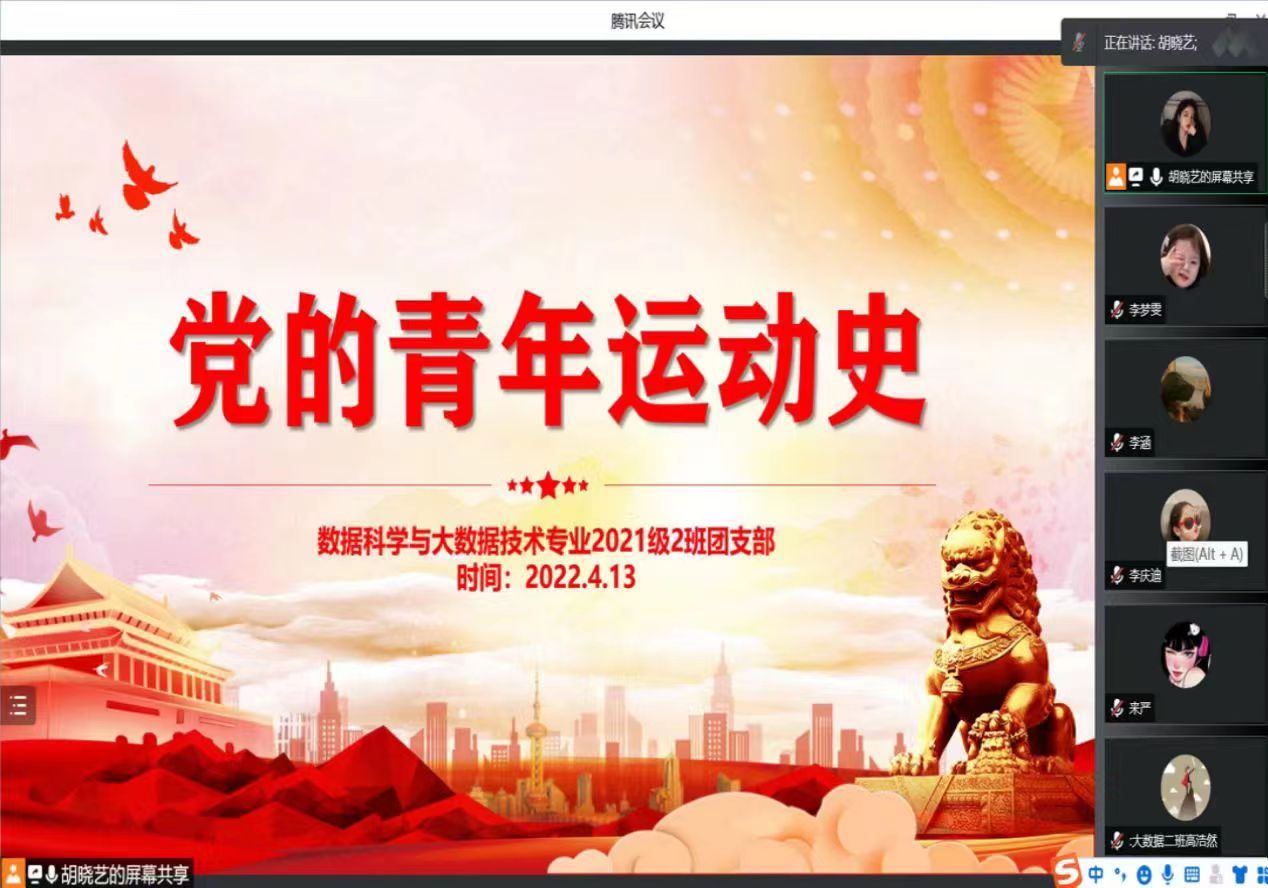 为学习党领导青年运动的光辉历程,英国上市公司365各团支部于2022年4月13日在腾讯会议举办了学习党的青年运动史主题团日活动。
