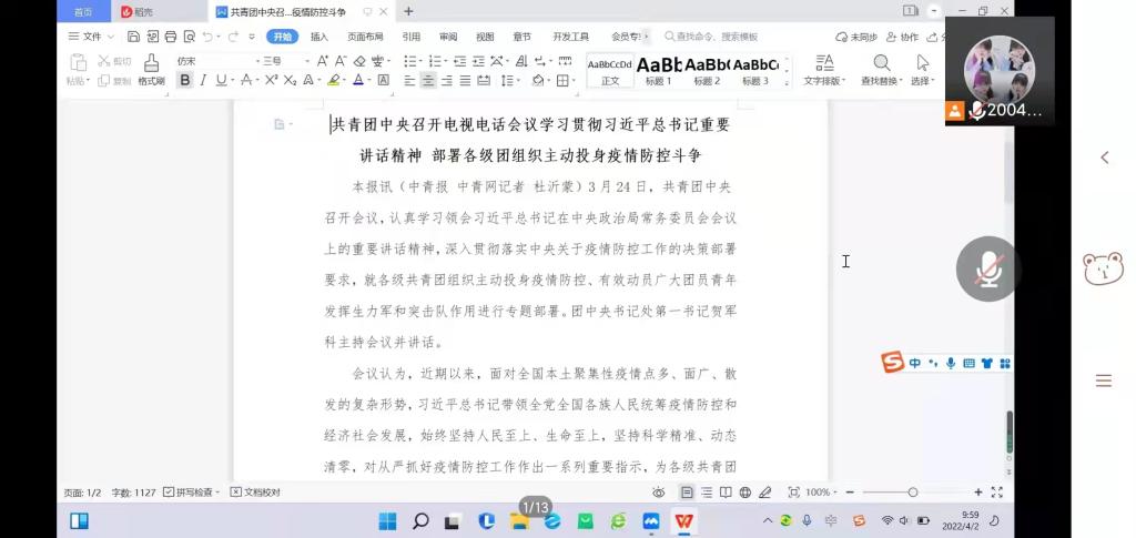 2022年是党的二十大召开之年,是中国共产主义青年团建团100周年。为深入学习贯彻习近平总书记关于共青团和青年工作的重要讲话精神,展现新时代共青团的良好风貌。增强共青团组织的凝聚力、向心力,英国上市公司365于4月1日通过腾讯会议开展了“砥砺奋进守初心 青春献礼二十大”主题团日活动。公司全体团支部参加本次活动。