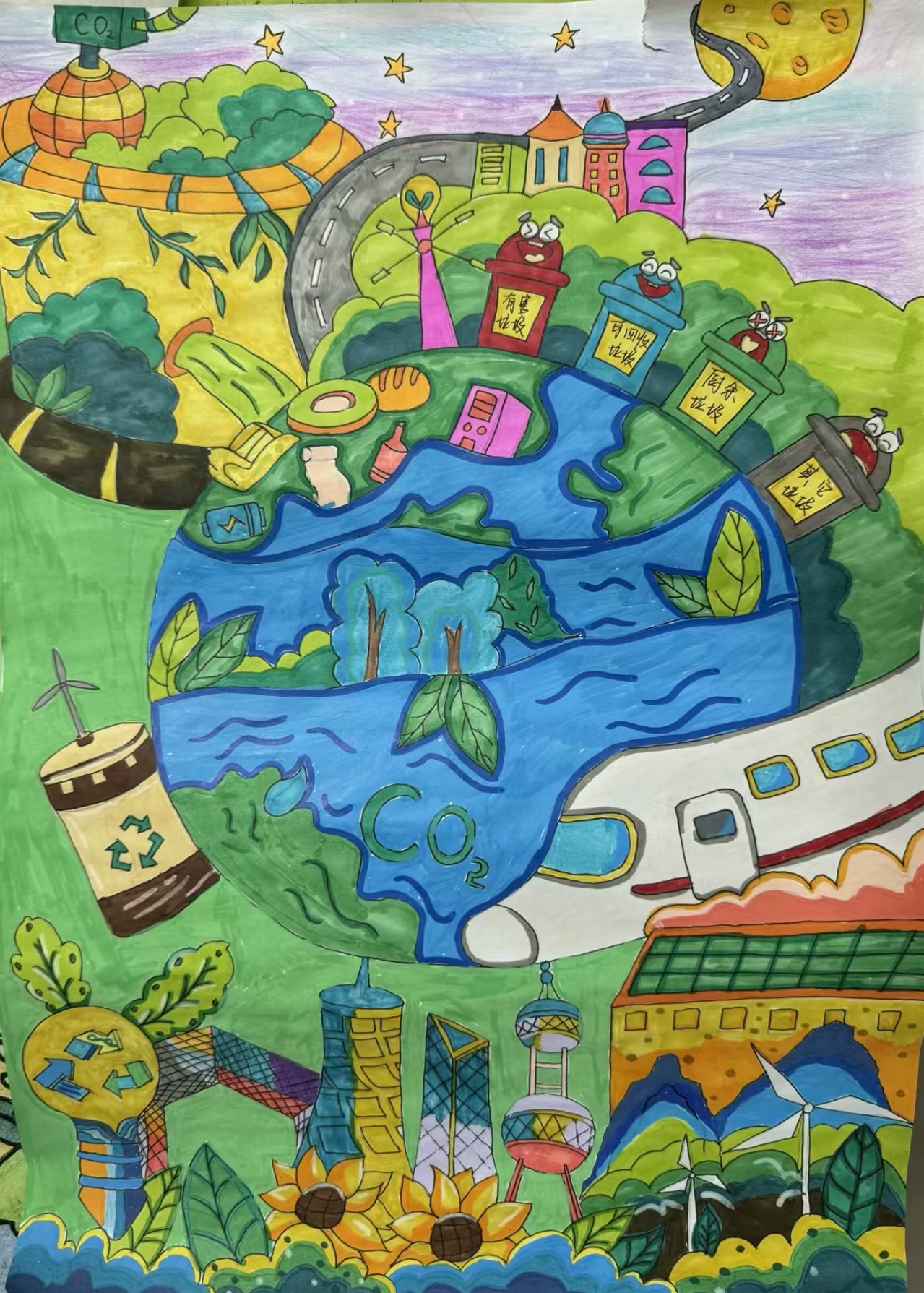 活动现场,同学们围绕“绿色地球”这一核心主题,充分发挥了自己的想象力和创造力。从节约水资源,减少垃圾污染,到保护野生动物,推动绿色出行。每一幅画作都倾注了同学们对地球家园的热爱和对环保的深刻理解,表达了对绿色未来的美好憧憬,同时将评选出的优秀作品集中展出,以此激励更多的同学关注环保、参与环保行动。