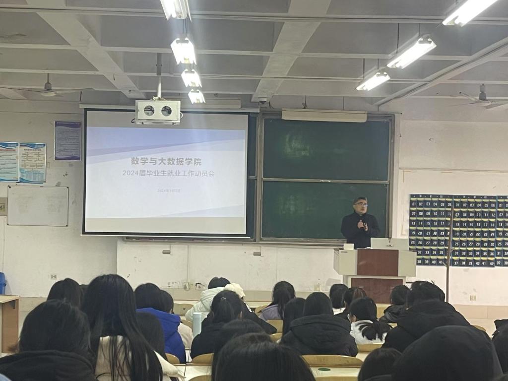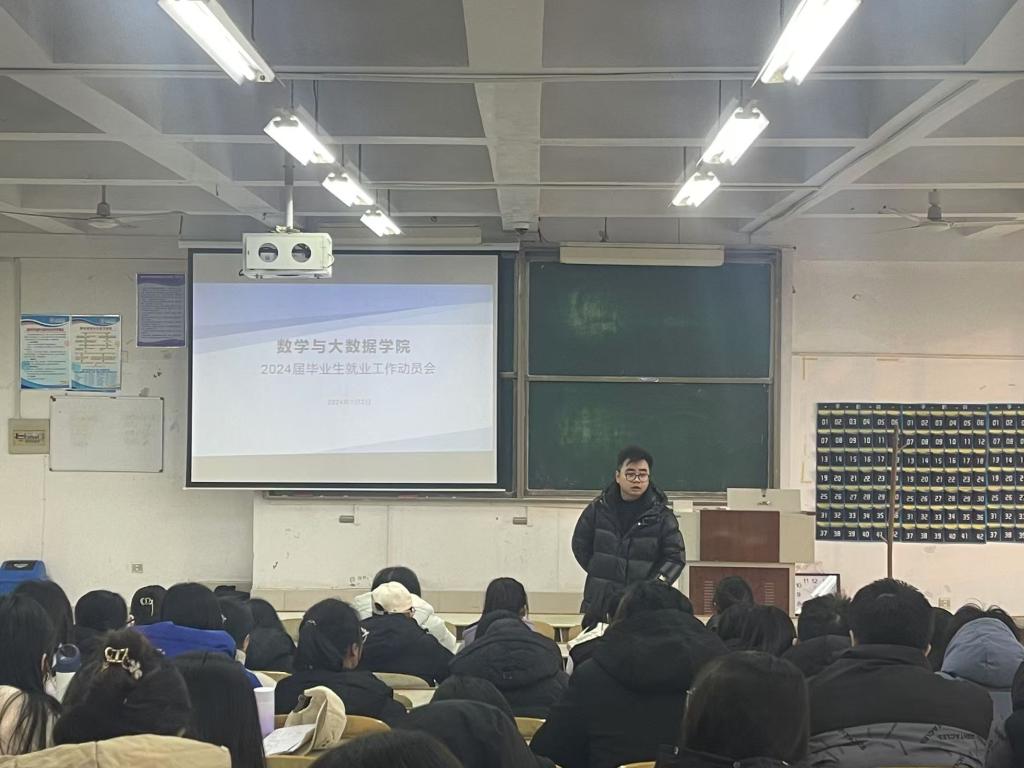 公司党委副书记陈志国通过分析当前的就业形势,指出当前就业市场充满挑战。但学院会为同学们提供帮助,如加强与企业的合作和开展就业指导等,以支持同学们的就业。同学们需认清形势,规划好自己的职业道路,早日找到满意的工作。对于参加研究生考试的同学,辅导员郭振将老师强调同学们利用寒假时间,提前准备复试工作,提前了解调剂信息。并督促面向企业就业的同学,及时了解招聘信息,以迎接2024年春招工作。