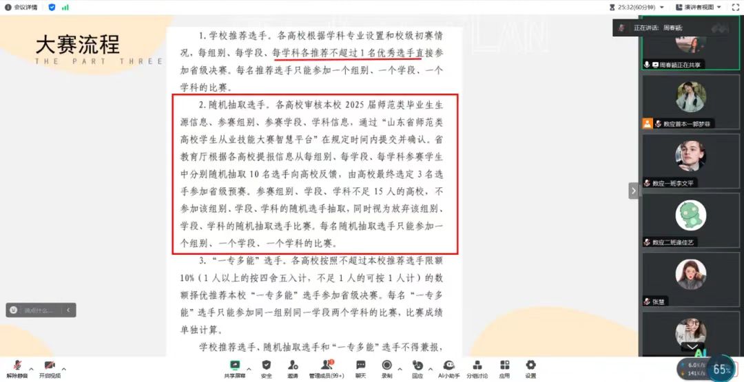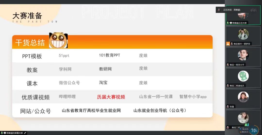活动伊始,20级周春颖同学先介绍了近年来随着教育行业的不断发展,师范技能日益凸显的重要性;然后着重介绍师范生从业技能大赛的流程和相关细节,分享自己的比赛经验、技巧和心得。随后20级张慧、武圣楠、王建亮同学就数学建模竞赛、创新创业大赛以及论文发表方面进行详细介绍。同学们就相关问题向分享者提问,进行互动交流,为同学们树立了信心。