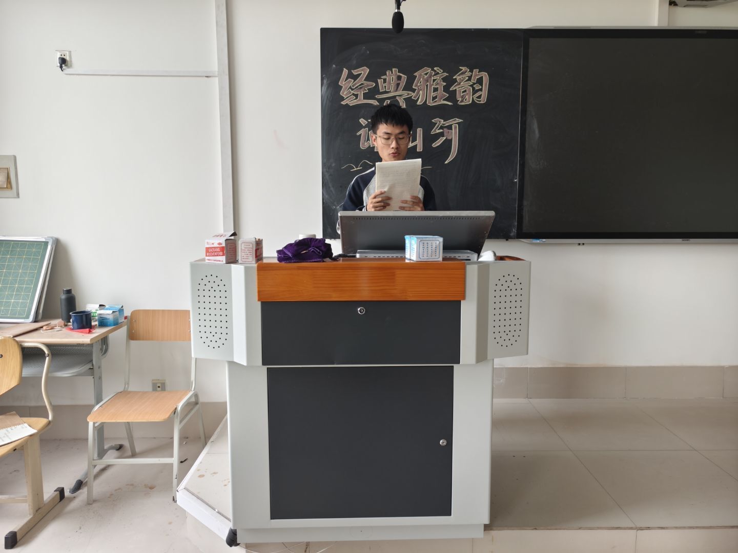 为激发同学们对中华经典的热爱之情,重新领略经典文化的独特魅力,感受其深厚底蕴与强大力量。英国上市公司365于4月13日在求真楼0311教室举办“经典雅韵诵山河——中华经典诵读”比赛。