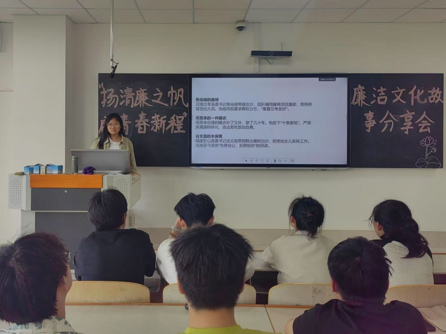 比赛现场,参赛选手紧扣“廉”字主题,从历史典故到身边榜样,以多元视角展现清廉内涵。同学们通过讲述历代先贤之廉洁故事、解读古人廉洁诗篇,同时结合自身经历,借助情景演绎等创新形式,让清廉文化可感可触、直抵人心。充分展示了同学们对清廉文化的不同认识和对清廉之人的敬重。