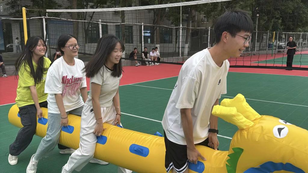 在此次旱地龙舟游戏活动中,同学们积极参与,展示青春活力,随着比赛拉开帷幕,同学们紧密配合,双手稳稳握住龙舟把手,迈着整齐划一的步伐,推动着龙舟在赛道上奋力前行。同学们展现出顽强拼搏的精神风貌,弘扬发展龙舟精神,在轻松愉快的氛围中磨练了团队意志,增进了同学们之间的感情。