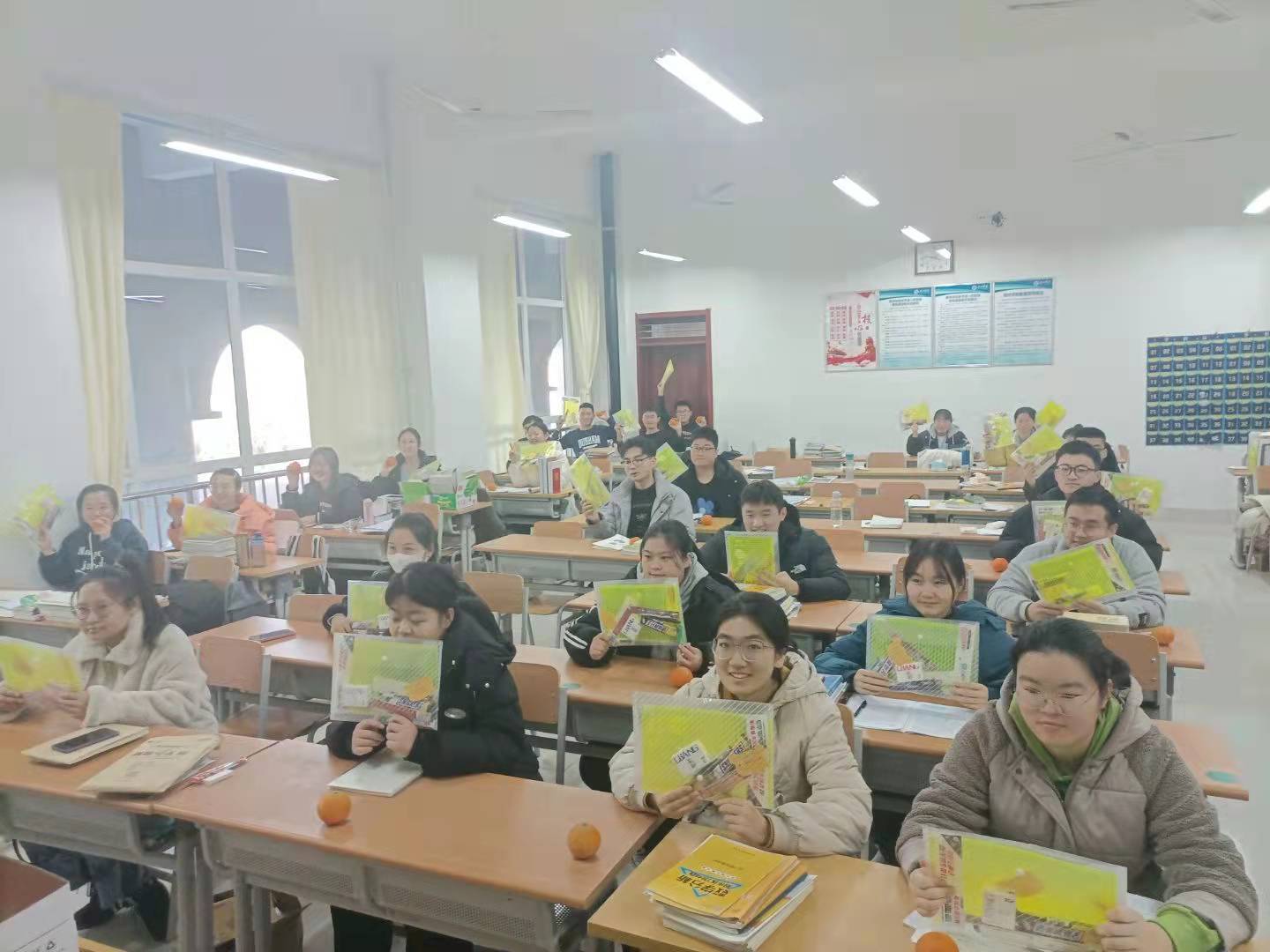 打开文件夹,里面有9样东西:一只考试专用涂卡笔、两只中性笔、三只“孔庙祈福”的备用笔芯、一块橡皮、一把小刀、一包纸巾、一个垫板、一块巧克力、一张写满祝福语的便利贴。还有一个黄澄澄的脐橙——祝所有考研学子旗开得胜,成功上岸。刘经理希望大家认真备考、沉着应战、全力以赴,不负青春韶华,祝福所有员工成功上岸、心想事成。“考研人,冲鸭!”“漫漫研途,你从来不是孤身一人,加油!”“祝你旗开得胜,相信自己,你是最棒的!展开你隐形的翅膀高飞吧!”……老师与学弟学妹们的祝福语句句充满力量,温暖着每一位考研学子的心。