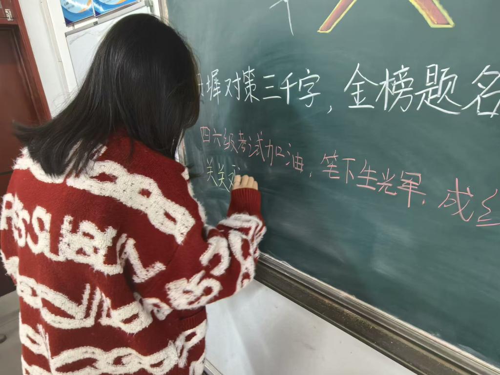 活动伊始,同学们纷纷走到黑板前,写下自己对备考同学的祝福,随后分别围绕单词、听力、阅读、写作等方面,与大家积极分享自己的一些应试技巧与学习经验,并建议大家通过多种方式培养起对英语学习的兴趣,从而提高英语学习的效率。为即将参加英语四六级考试的学子们加油助威,送去温暖与力量。