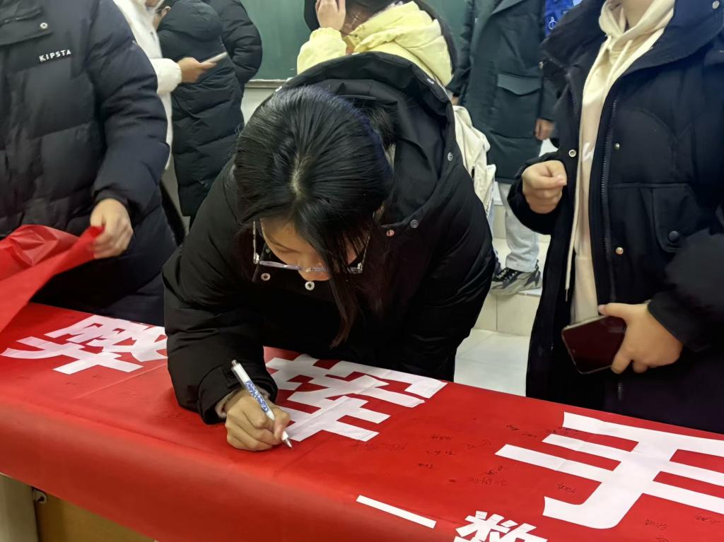 会议伊始,各年级辅导员通过典型案例详细讲解了学校考试的规章制度,强调诚信考试对个人道德修养和学业发展的重要性,希望同学们端正考试态度,提高诚信考试的意识,树立正确的考试观。最后,各班班长带领大家签署诚信考试承诺书。同学们纷纷表示,将诚信赴考,在每一场考试中都坚守底线,不作弊、不违规,营造良好的考试环境。