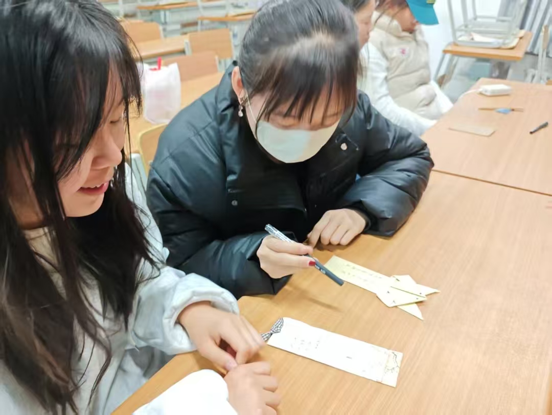 活动现场,同学们相互合作,充分发挥想象力和动手能力,精心排版设计,制作出形态各异、色彩丰富的书签。制作同时,大家交流分享自己的生活感悟,互相倾听、互相鼓励,从中汲取灵感,共同感受手工创作的乐趣和阅读的魅力,进一步促进了自我表达和情感交流。