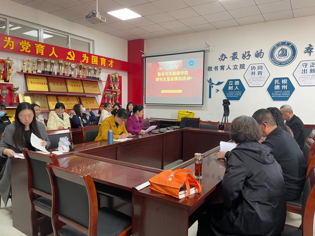 本次活动分为三个环节:第一环节为英语问答阶段,含英语介绍、简单的日常对话和专业术语的交流。 第二环节为专业课知识问答,以六门专业课(数分、高代、概率、常微、近世代数和实变泛函)为主,内容涉及概念、解题步骤、重要定理的复述和解读等,主要看员工对专业基础知识的理解程度。第三环节为综合知识问答阶段,考察员工的反应速度,交往能力和继续研究的能力。 通过此次活动,各位专家老师为考研同学的复试进行了实战指导,同学们受益匪浅,纷纷表示加强学习,进一步查漏补缺。