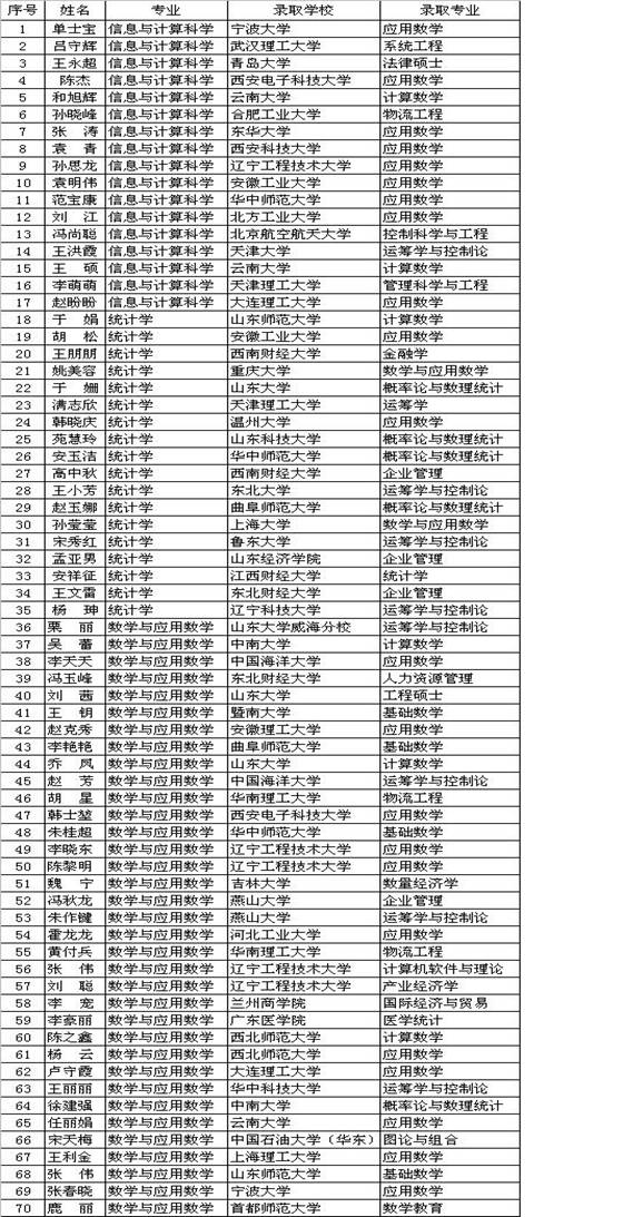 2010届考研员工名单