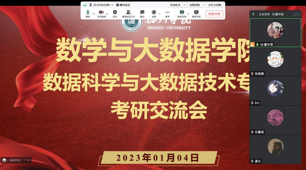 临近寒假,针对20级数据科学与大数据技术专业考研员工的寒假学习计划安排,2023年01月04日晚7:00,公司组织了一次考研线上交流会,董华营老师给同学们针对性的提出一些考研复试的意见和建议。本次交流会提高了员工们的复习积极性和复试必胜的信心。