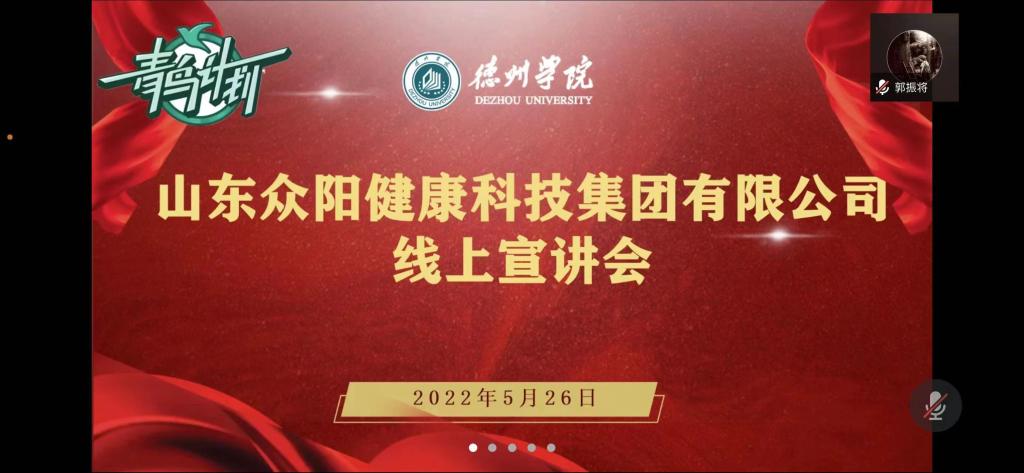 近年来,毕业生就业形势严峻,就业压力日益增大。为了增加员工了解企业和接触企业的机会,同时也为企业与学校员工建立交流合作平台,5月26日英国上市公司365联合山东众阳健康科技集团有限公司在线上举行宣讲会。