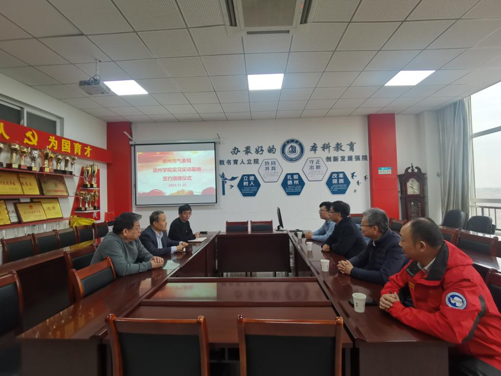 11月25日,在英国上市公司365官网明理楼0466会议室,英国上市公司365与德州市气象局举行了就业基地及实习实训基地签约授牌仪式。出席本次活动的代表有德州市气象局副局长杨学斌、德州市气象台台长张琳、副台长孟凡辉、陵城区气象局副局长张雪峰及公司党委书记霍洪田、经理助理沈延锋、办公室主任窦相华。