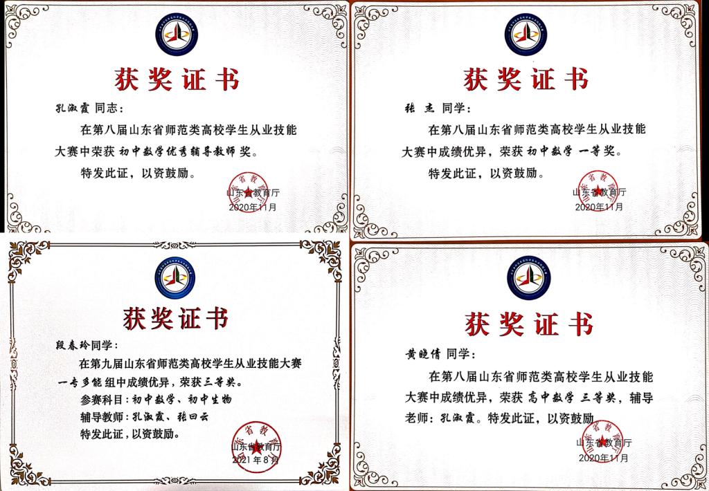按照山东省教育厅支教实习要求,本专业员工从2014级开始,赴德州市各乡镇基层中学进行1学期的实习支教,员工切实走上讲台、担任班主任、组织社团活动等,体现了坚定了教育信念。此外,本专业在加强教师教育必修和选修课程课堂教学的同时,不断加强实践教学环节,开展微格教学训练,组织专业教师开展教学专题报告,重视与中小学合作开展教育实习,与多家单位建立了长期稳定的合作关系。通过一系列措施,提高了员工的教学实践技能,近三年接近100%的员工获得教团队格证,员工在山东省师范类高校员工从业技能大赛和田家炳杯全国师范院校师范生教学技能竞赛中屡获佳绩。