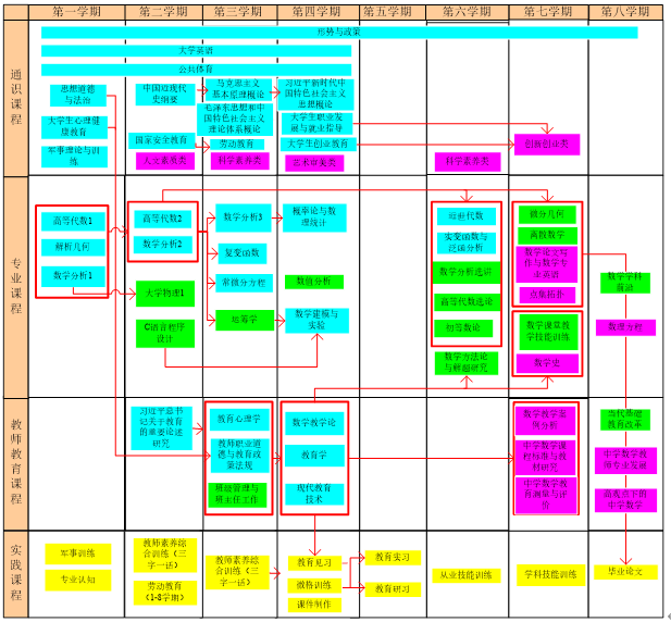 核心课程:数学分析、高等代数、解析几何、常微分方程、概率论与数理统计、大学物理、复变函数、近世代数、数学建模与实验、数学教学论、实变函数与泛函分析、初等数论等。